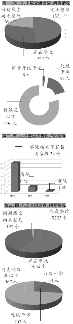 从实地巡查情况看,各省(市、区)委、省(市、区)政府及有关部门在专项行动中均树立了牢固的“四个意识”。省(市、区)政府召开专题会议研究专项行动要求,各相关部门联合部署专项行动的各项任务,全省各级部门强化“党政同责”“一岗双责”“失职追责”,负责问题排查和整改落实。追究相关责任292人。在有力促进自然保护区内违法违规问题解决的同时,起到了有效的警醒和震慑作用。