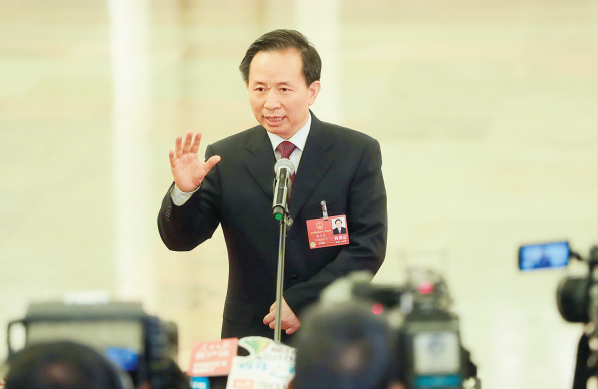 2018年3月19日,生态环境部部长李干杰在人民大会堂“部长通道”就打赢蓝天保卫战等问题回答了记者提问。