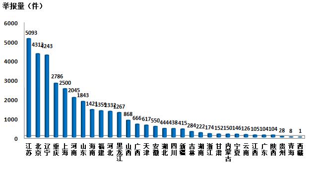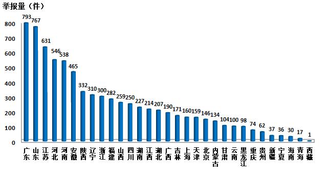 排名 | 省份 | 举报量/件 |