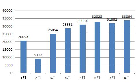 2018年8月,平台共录入电话举报33804件,相比上月增加1922件,环比增长6%;相比2017年同期减少2364件,同比降低6.5%。