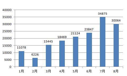 图6 2018年1-8月全国网络举报量