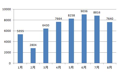 2018年8月,全国共接到网上举报7640件,相比上月减少1176件,环比降低13.3%;相比2017年同期减少3761件,同比降低33%。