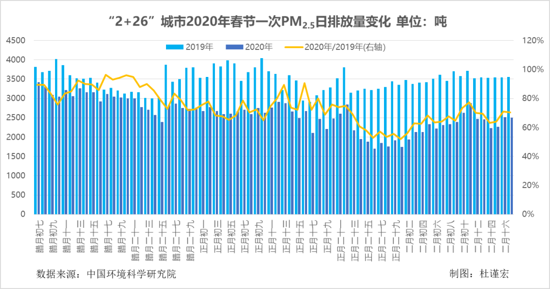 “2+26”城市春节前后一次PM2.5日排放量变化
