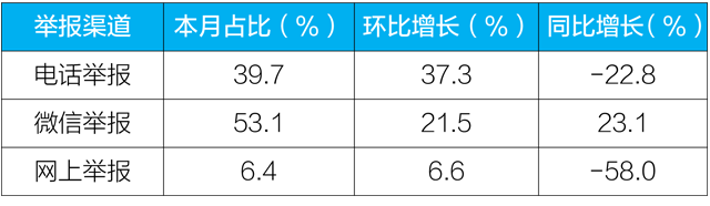 电话及微信举报量环比均显著上升