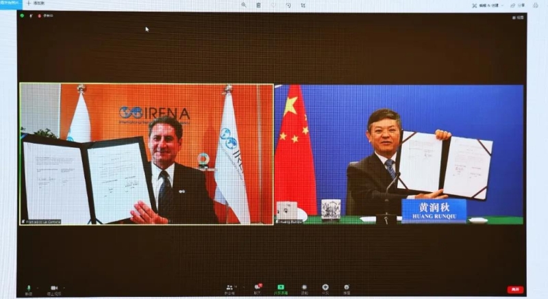 6月23日,生态环境部部长黄润秋在京视频会见国际可再生能源署总干事弗朗西斯科·拉卡梅拉。双方共同签署《中华人民共和国生态环境部与国际可再生能源署关于应对气候变化合作的谅解备忘录》,并就进一步加强双方合作,共同推进可再生能源发展与应对气候变化工作进行交流。