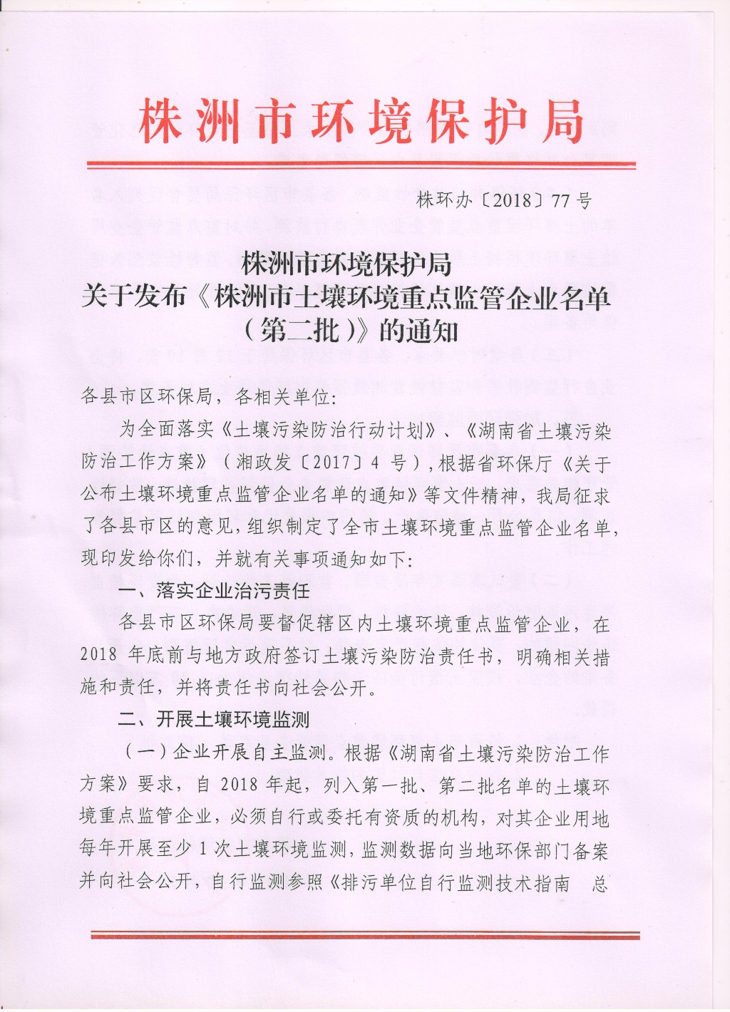 关于发布《株洲市土壤环境重点监管企业名单(第二批)》的通知