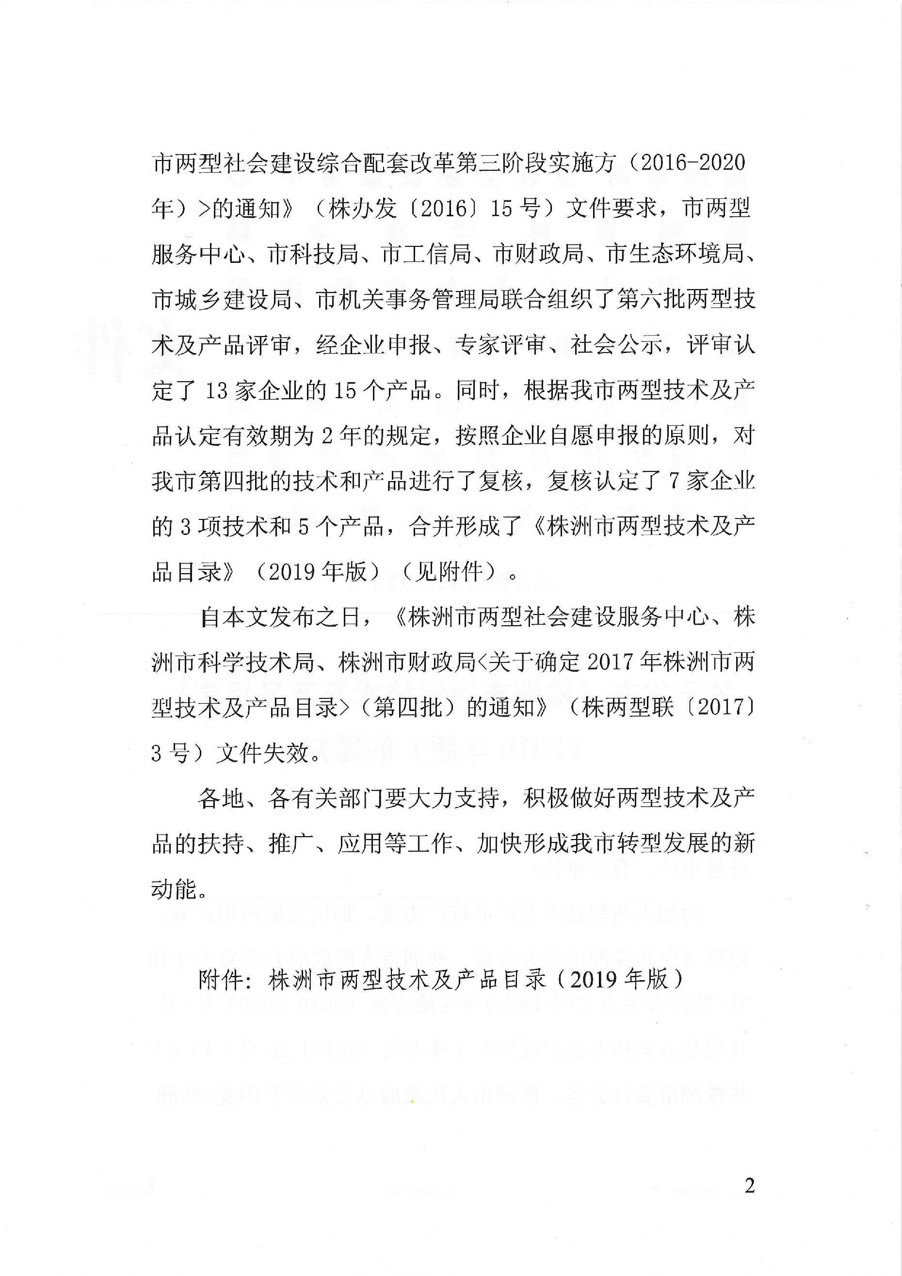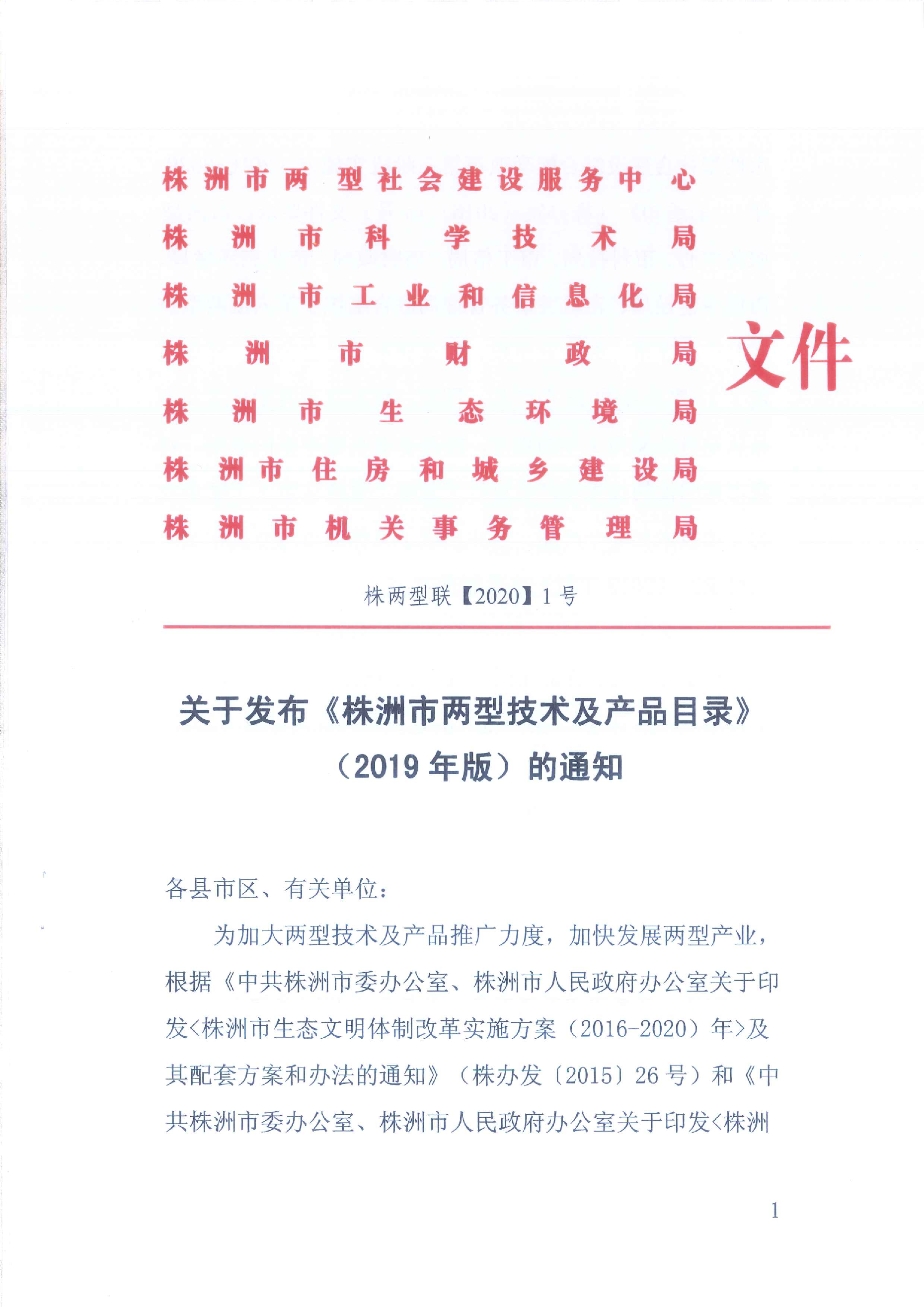 关于发布《株洲市两型技术及产品目录》(2019年版)的通知