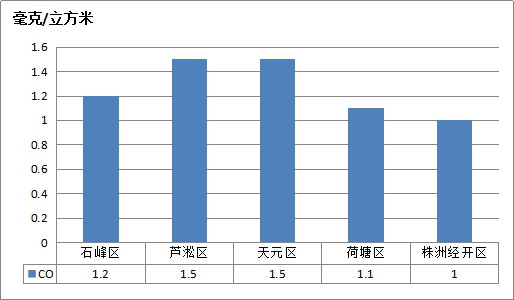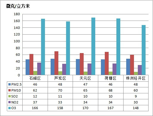 按照城市环境空气质量综合指数评价,市辖各区从好到差排名为:株洲经开区、荷塘区、石峰区、天元区、芦淞区。