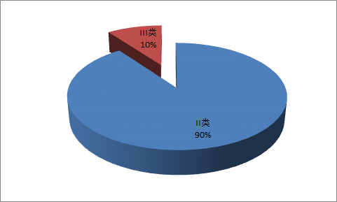 全市国家和省设置的地表水监测断面共30个(其中河流监测断面29个、湖泊监测断面1个)。以年均值评价,II类水质断面27个,占90.0%,III类水质断面3个,占10.0%,全市地表水水质达标率100%。