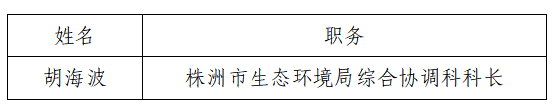 根据《湖南省生态环境厅办公室关于开展第六届"湖南最美基层生态环保铁军人物"评选活动的通知》,经株洲市生态环境局核定,推荐胡海波同志为第六届"湖南最美基层生态环保铁军人物"候选对象。为增强评审工作的透明度,接受广大群众的监督,现将推荐结果予以公示。公示时间:2024年4月15日-2024年4月19日,在公示期内,如有异议,请向株洲市生态环境局机关纪委反映。