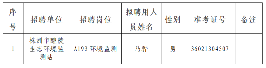 株洲市生态环境局2024年株洲市市直事业单位公开招聘工作人员拟聘用人员名单公示
