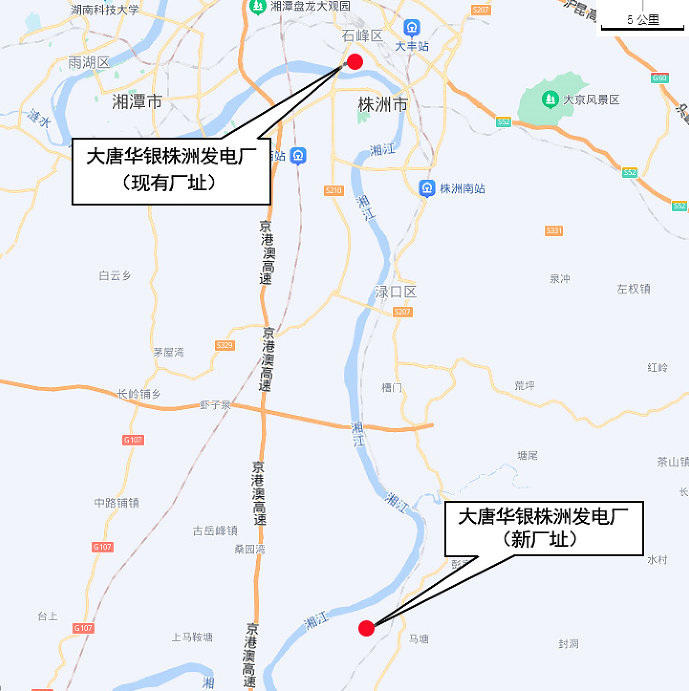 图2:大唐华银株洲发电有限公司搬迁前后位置比对图
