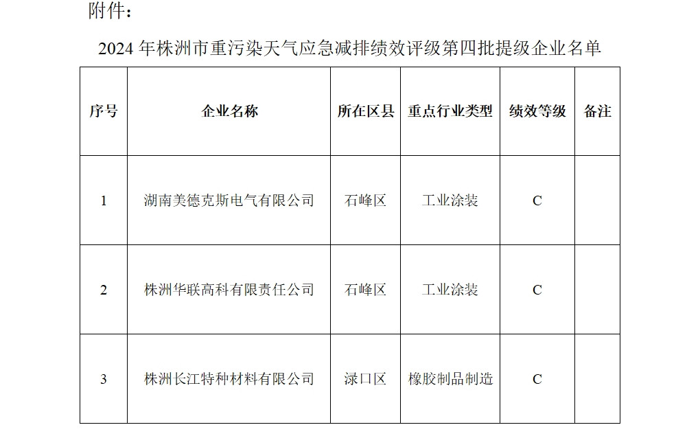 附件:2024年株洲市重污染天气应急减排绩效评级第四批提级企业名单