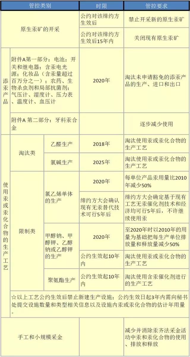 为保护人类健康与环境免受汞及其化合物人为排放和释放的危害,国际社会针对管控汞问题达成高度共识,于2013年10月就具有全球法律约束力的汞文书文本内容达成一致,并将其命名为《关于汞的水俣公约》(以下简称"公约"),对汞的供应、贸易、使用、排放及释放等提出全面管控要求。目前,国际上共有包括我国在内的128个签约方。公约第三十一条规定:"本公约自第50份批准、接受、核准或加入文书交存之日起第90天开始生效"。2017年5月18日,联合国同时接受了第45-52份批准文书,因此,公约在2017年8月16日生效。