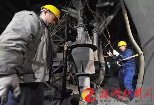 ▲ 工作人员拔出基夫赛特炉的下料口喷嘴,此举意味着株冶在清水塘地区的最后一座冶炼炉熄火停产。
