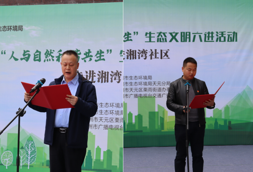 ▲市生态环境局天元分局、湘湾社区相关负责人分别发起倡议