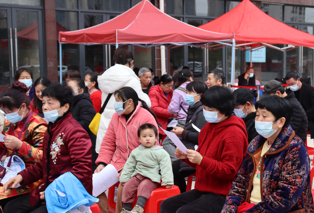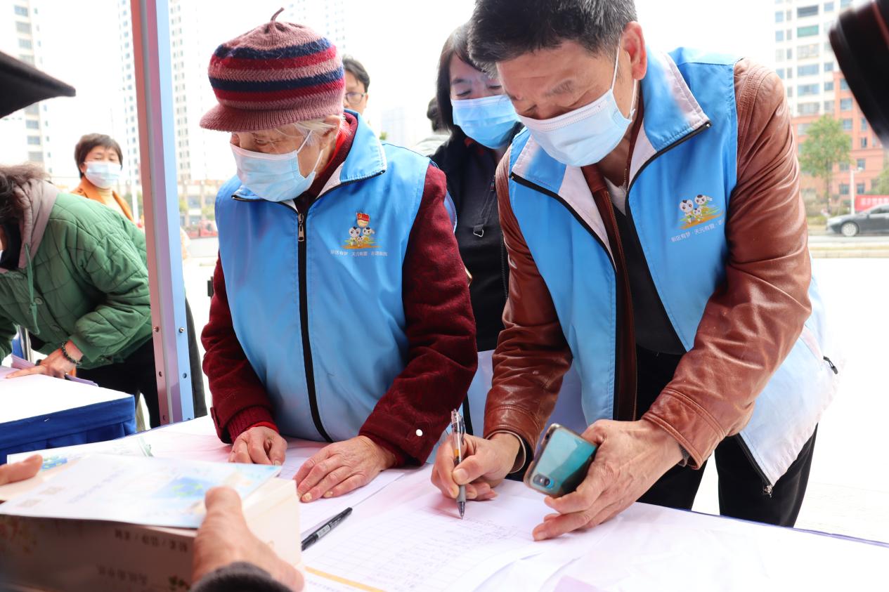 ▲社区群众在有序填写调查问卷