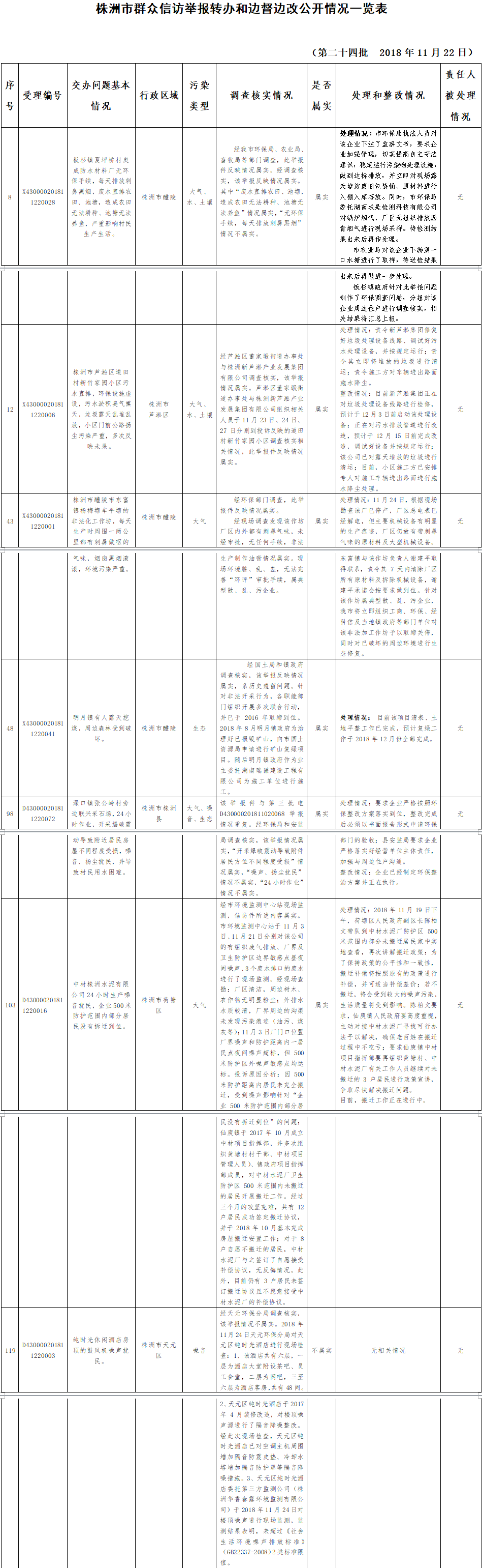 中央生态环境保护督查“回头看”群众信访举报件边督边改公开情况一览表