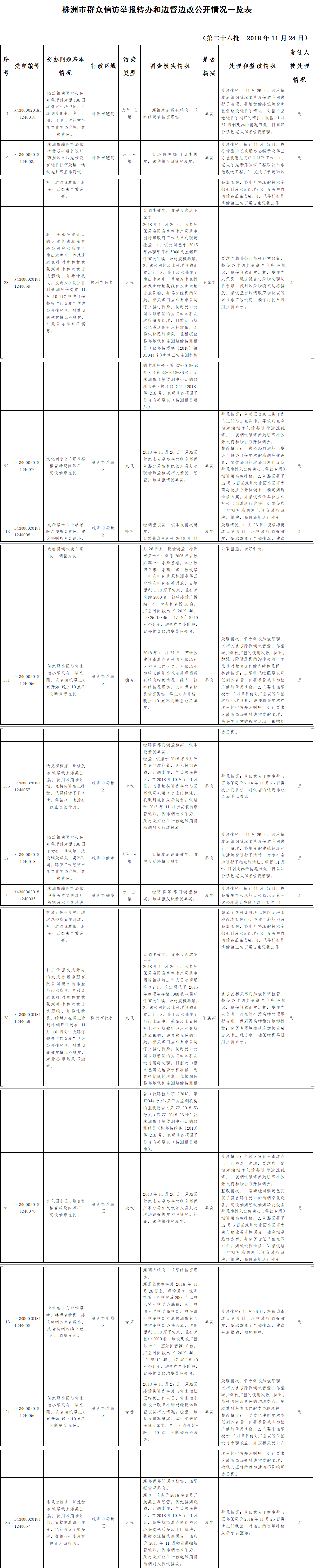 中央生态环境保护督察“回头看”群众信访举报件边督边改公开情况一览表