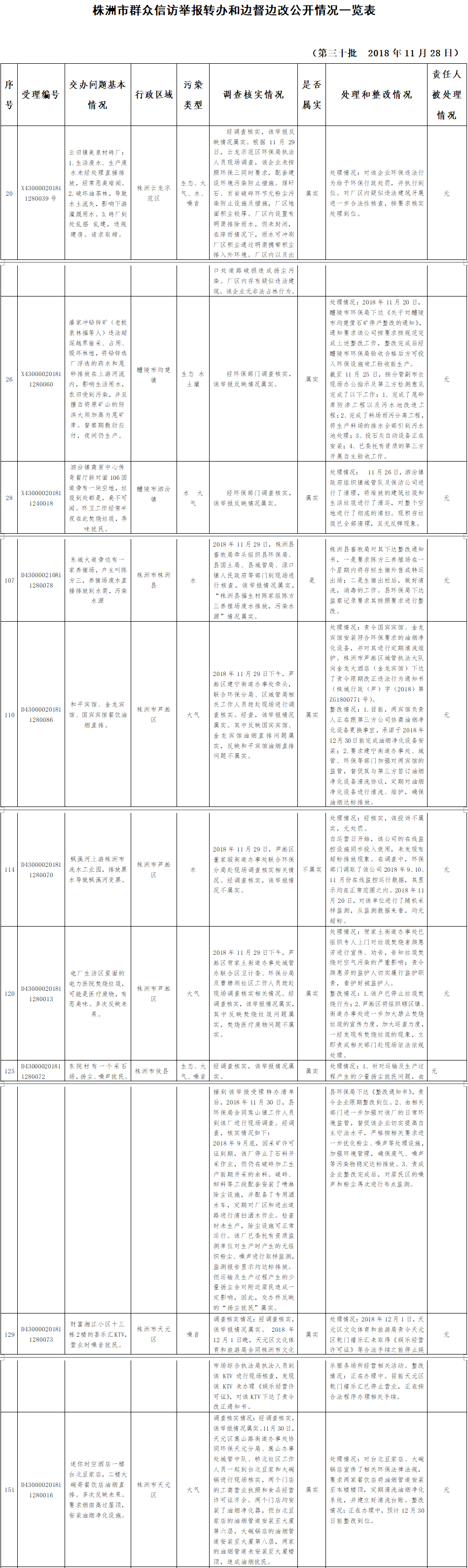 中央生态环境保护督察“回头看”群众信访举报件边督边改公开情况一览表