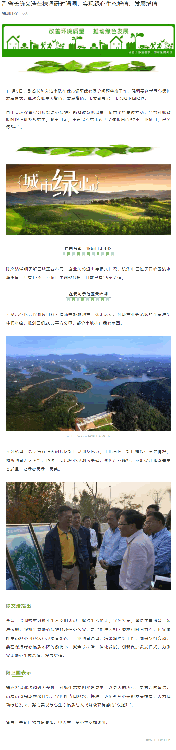 副省长陈文浩在株调研时强调:实现绿心生态增值、发展增值