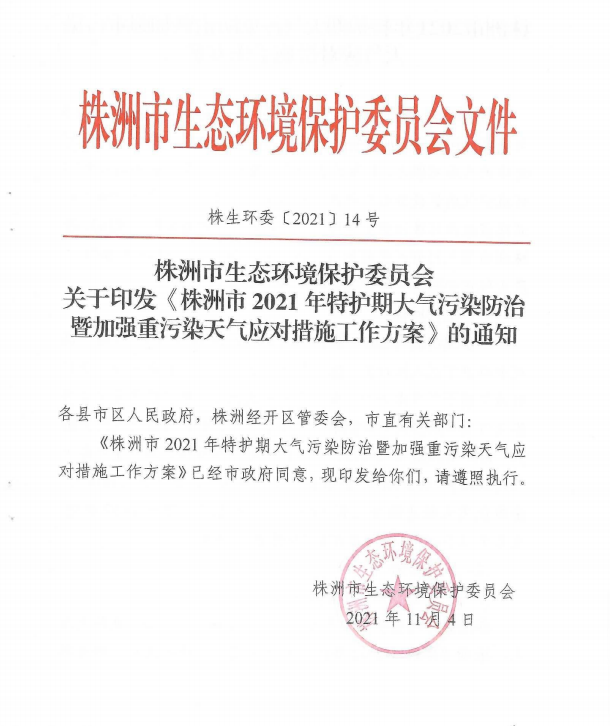 关于印发《株洲市2021年特护期大气污染防治暨加强重污染天气应对措施工作方案》的通知
