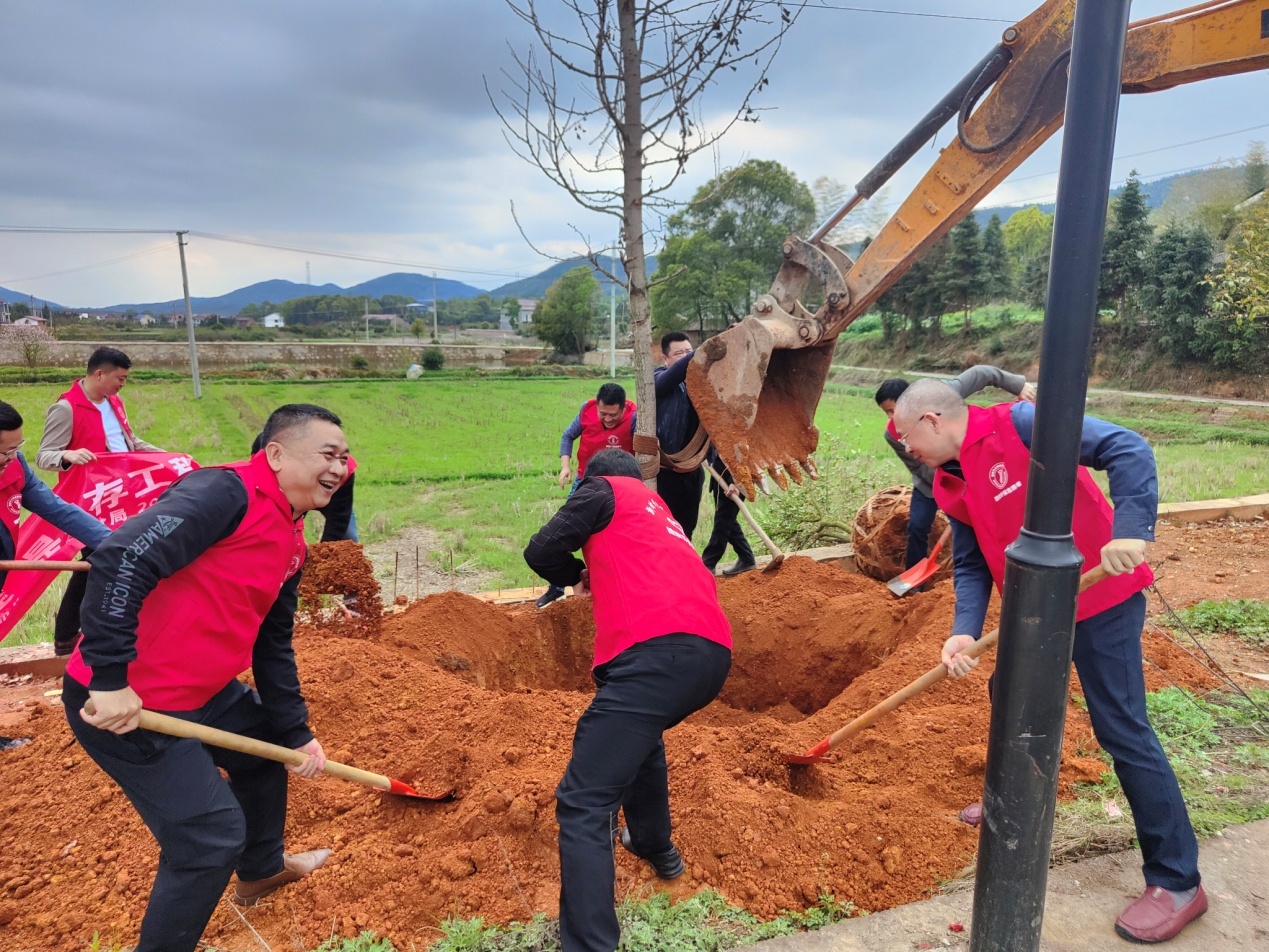 植树现场热火朝天,干劲十足。大家纷纷拿起工具,有的挖坑,有的铲土,有的扶树,有的培土,有的浇水。即使脚下满是泥泞,大家依然不亦乐乎,不断挥舞着铲子给树填土,经过一个多小时的努力,成功栽种了6棵大树,相信不久后柏大村将绽放几抹新绿。