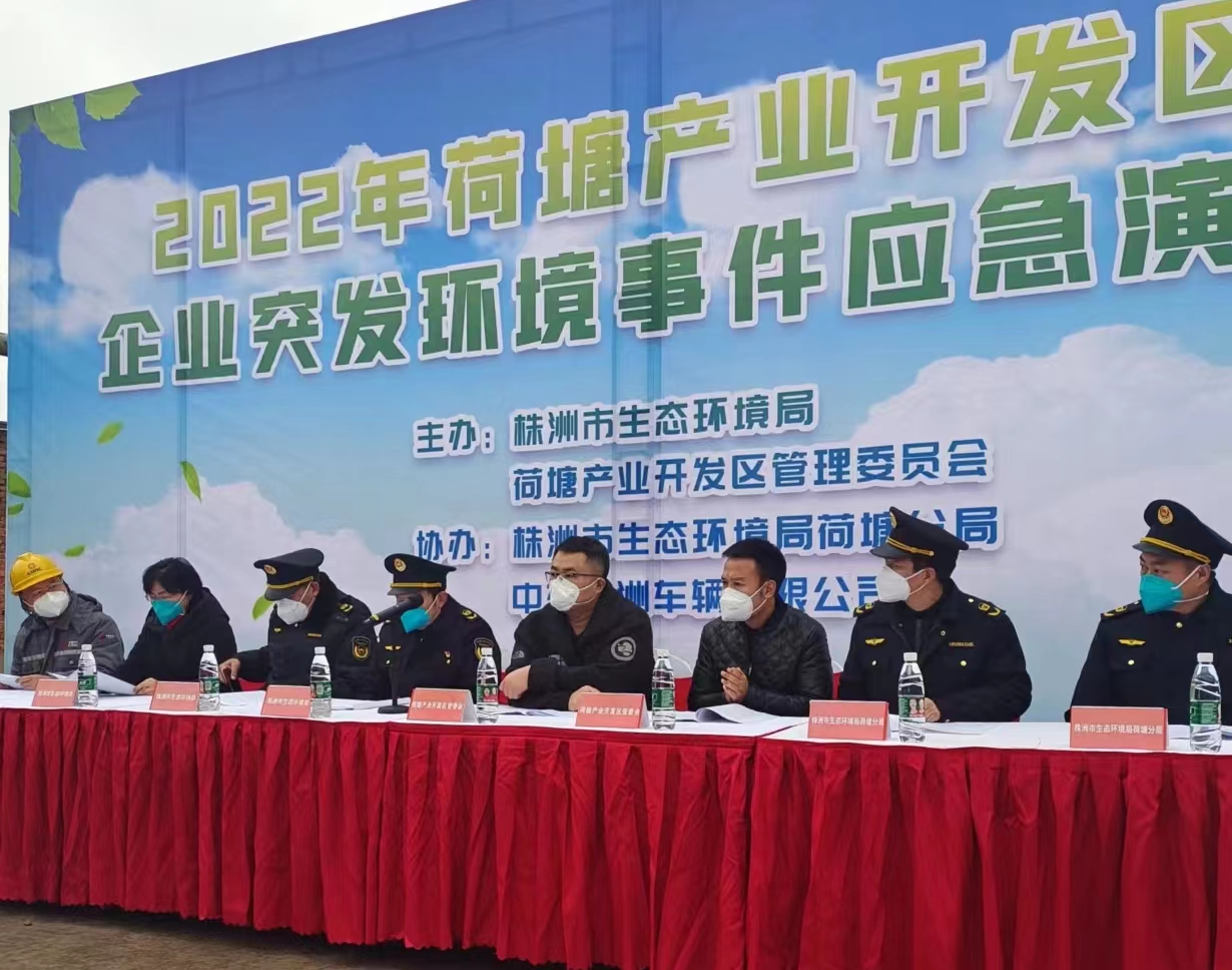 为检验荷塘区重点企业突发环境事件应急预案的科学性和可操作性,提升应对处置突发环境事件的综合能力,夯实企业落实"三管三必须"主体责任基础,12月29日,由株洲市生态环境局、荷塘产业开发区管理委员会主办,株洲市生态环境荷塘分局、中车株洲车辆有限公司承办的"2022年度荷塘产业开发区企业突发环境事件应急演练"在中车株洲车辆有限公司举行。