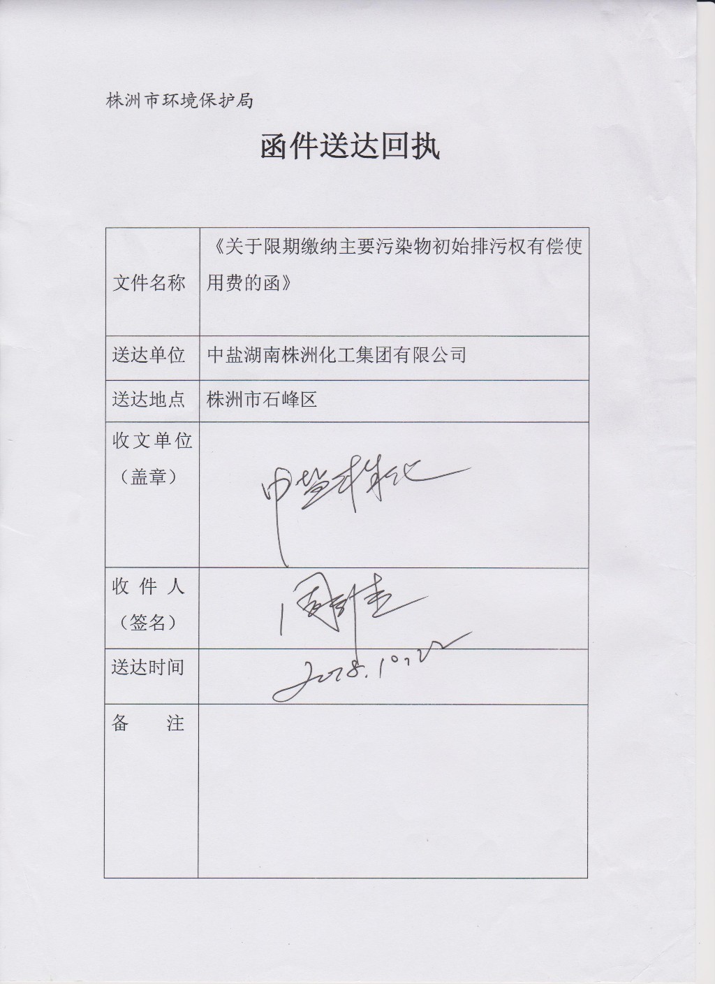 送达单位 | 中盐湖南株洲化工集团有限公司 |