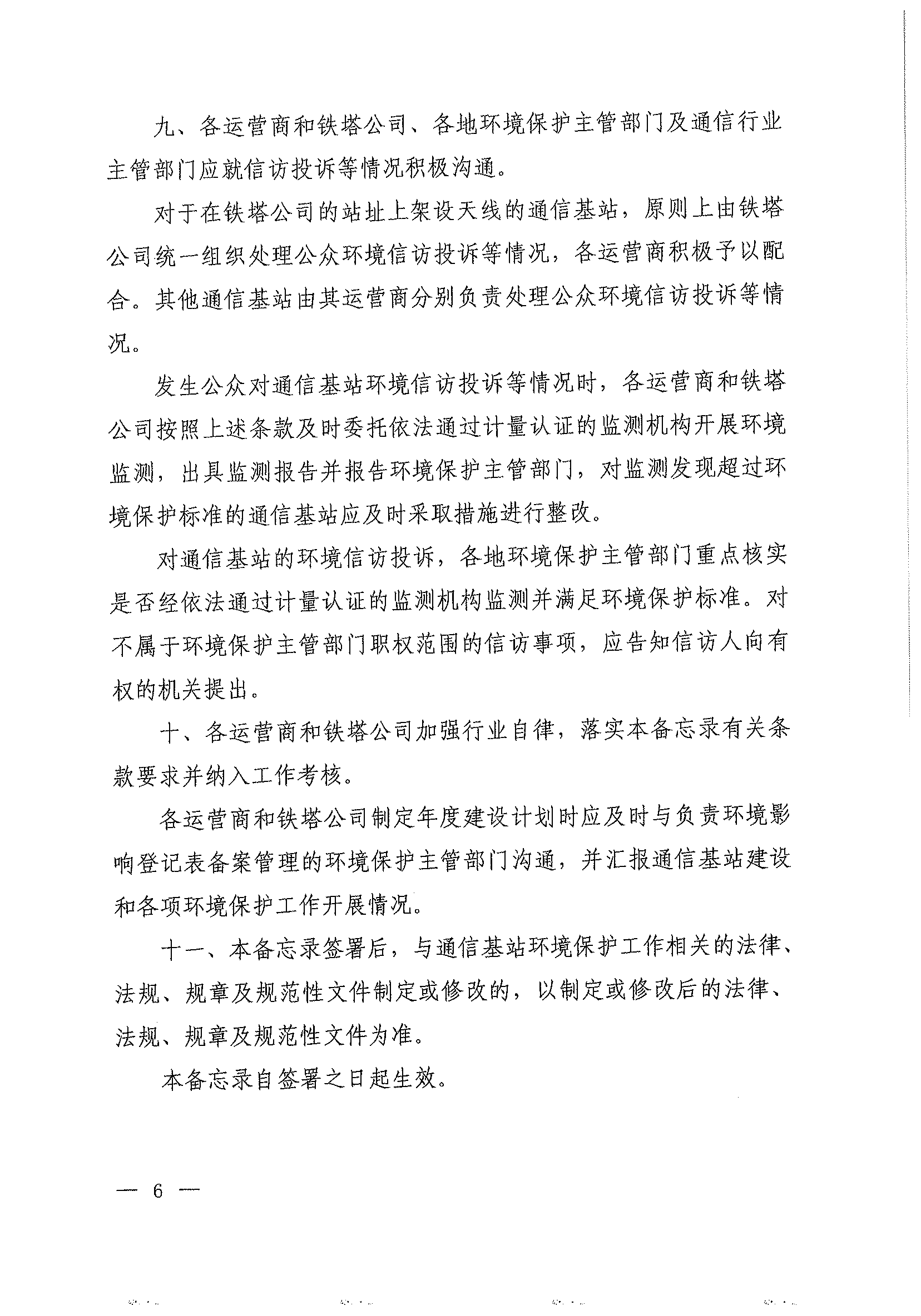 关于印发《通信基站环境保护工作备忘录》的通知正文
