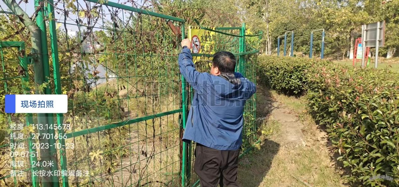 在渌口镇县级饮用水源地,巡查人员发现一级保护区护栏有几处新增破损,明显系人为所致,立即安排维修人员进行修缮,并树立警示牌。